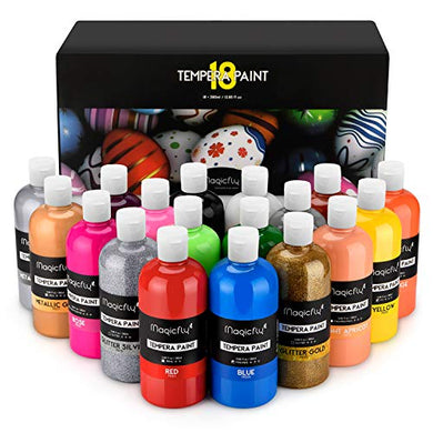 Magicfly 18 Colors Tempera Paint Set for Kids, Large Volume(12.85 fl oz./380 ml), Non-Toxic Washable Color (Basic, Neon, Glitter, Metallic Colors), Perfect for Finger Paint, Sponge and Poster Paint